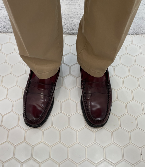 My pants were khaki chinos from Lands’ End and my shoes were my burgundy Bass Weejuns. Slip-on shoes are always a good choice for at-home dates.