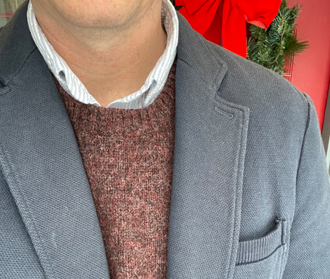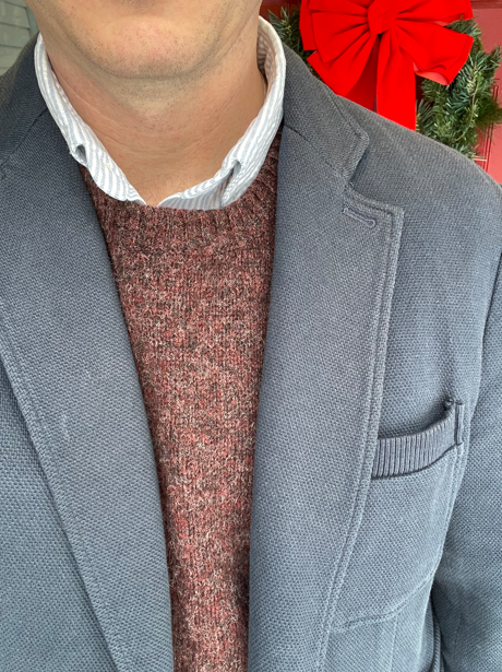 Under the jacket, I wore a burgundy Shetland sweater my wife bought me a couple years ago. This sweater has because my new “travel sweater” since it’s just a touch heftier than my navy sweater from J. Crew.